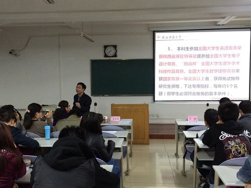 4月20日晚,必赢官网于长安文津楼410教室召开了2014年学院学生考研动员大会。此次大会由必赢官网党委副书记袁冰老师主持。会议邀请了我校研究生招生办公室主任程蕾老师,我副院长裘国勇、吴振强老师。必赢官网11级辅导员郭康凌老师、12级辅导员张冲老师及学院11、12级全体非师范生参加了此次会议。