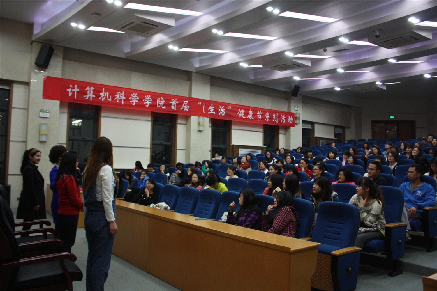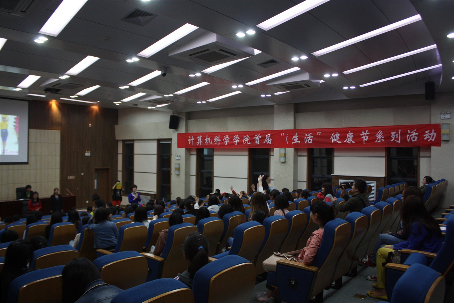 4月13日晚7点,必赢官网首届“i生活 ”健康节系列活动之“扮靓你自己”讲座在长安校区文澜楼一层会议厅举行。这次活动不仅吸引了众多女生,部分男同学也来到了现场。国家高级礼仪培训师吴岳虹老师与在场师生共同分享了她的扮靓秘诀,让大家学到了很多关于化妆及服饰搭配方面的知识。