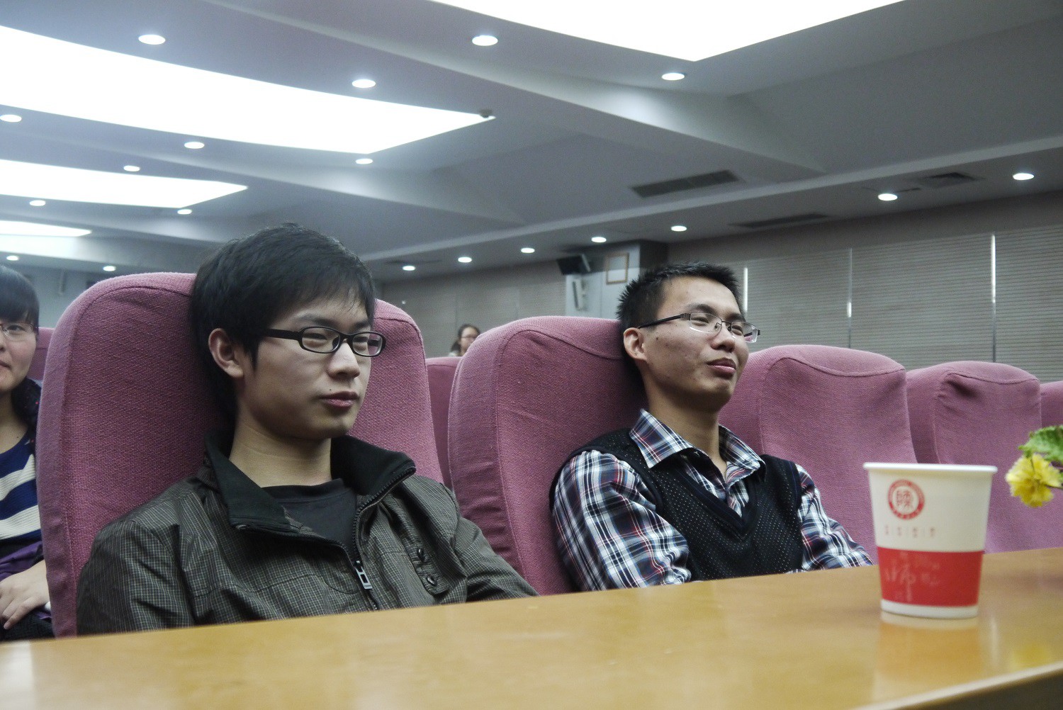 随后,学院研究生欧阳显斌与在场同学分享了他的ACM竞赛之路。欧阳同学言语幽默且充满自信,处处流露出对ACM这项赛事浓厚的兴趣和深深的热爱,他也用自己身边的实例向大家展示了参加ACM比赛对个人能力培养和发展带来的好处。他与在座同学分享的人生信条:“大半失败者是因为快成功的时候放弃了。想成功就要坚持!”赢得了全场的喝彩。