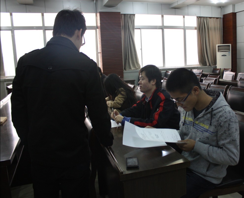 宣讲会结束后报名同学按照秩序参加了公司笔试,同学们认真答题,气氛严肃。招聘会现场秩序井然。