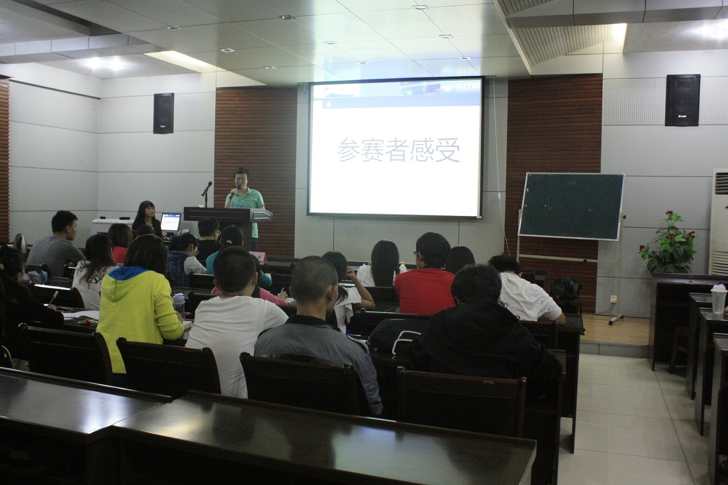 接着,必赢官网2012年参加第八届“挑战杯”大学生创业计划竞赛的2010级本科生杨婷婷、郎欢与在座同学分享了他们团队在比赛过程中的感受和经验。通过参加比赛,他们都感受到要想取得理想的成绩,团队协作是最重要的,团队成员要全面、谨慎,在性格上要可以互补。此外,在备赛过程中,不仅要有毅力和恒心,还要合理安排时间,确保学习备赛两不误。