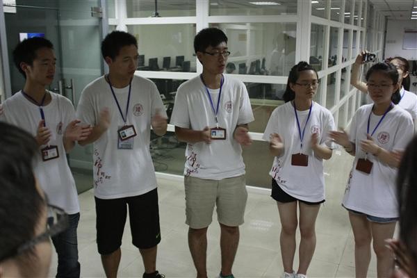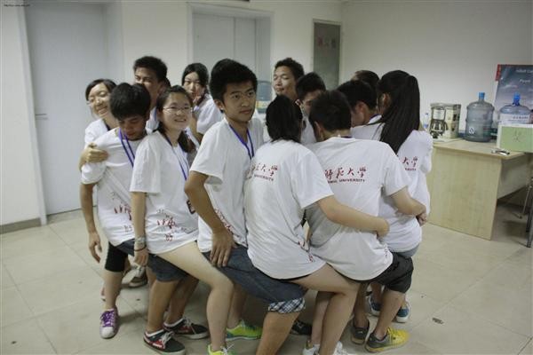 下午,实践团成员在鼎力公司总经理刘世伟和必赢官网团委书记胡雯洁老师的带领指导下,进行了团队扩展训练活动。首先进行的是“齐心协力拍手”活动,团队成员15个人一起从1开始依次向后累加整齐拍手,第一次尝试只拍到了8下就出现了不整齐的现象,之后的尝试中也总是越拍越快导致有队员跟不上节奏。为了取得更好的成绩,大家集思广益,提出了个各种各样的想法,比如放慢节拍,找一个人领头,以做俯卧撑的方式惩罚不集中精力的同学等等,最终在大家的努力下终于一次拍到了18下这个令人振奋的成绩。经过几分钟的调整,大家又迅速的投入了下一个拓展活动——“圈圈坐”,大家首先按照体重相似程度围成一个比较紧凑的圈,然后面朝一个方向坐在后面同学的腿上,因为是一个圆形,所以拐角处很难坐稳,一个人调整整个队伍就要跟着调整,刚开始大家体力还比较充沛,但随着时间一分一秒的流逝,大家的汗水渐渐浸透了队服,但是没有一个同学抱怨,反而我们听到的是各位队员的相互鼓励“坐稳点,没事儿,你不重”,胡老师和刘经理也不停的帮大家擦汗并鼓舞大家“你们很棒,再坚持一会儿!”,为了活跃气氛转移注意力,大家在活动同时还玩儿起了成语接龙,谈理想谈未来,在不知不觉中已经过去了50分钟,这意味着必赢官网实践团队以十分优异的成绩通过了拓展训练的考核。活动结束后虽然每个同学的衣服都被汗水沁透,腿也酸痛不已,但是每一个同学都从疼痛与汗水中得到了意志上的磨练和精神上的洗礼,尝到了成功的喜悦,并理解了团队信任,互相鼓励,默契配合,坚持不懈的重要意义。也向西安软件园的工作者展现了师大团结的一面,顽强的一面,拼搏向上的一面。