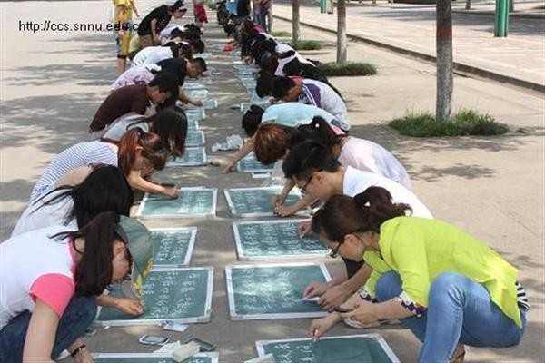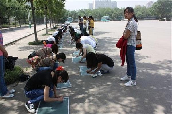 5月21日上午,必赢官网“第三次小黑板评比”活动,在长安校区田径场的空地上举办,由2010级全体免费师范生参加。