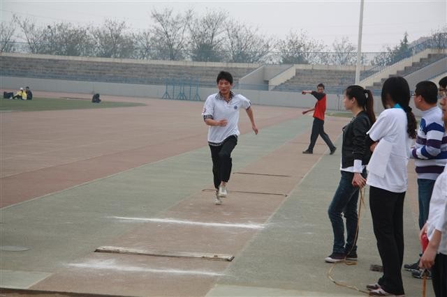 ◆张海波同学在男子跳远中获第一名;