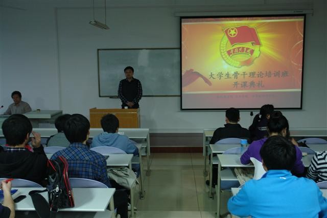 2011年4月14日晚上七点,必赢官网同国际商学院,美术学院共同在文津楼610教室举行了第一期大学生骨干理论培训班开班典礼。