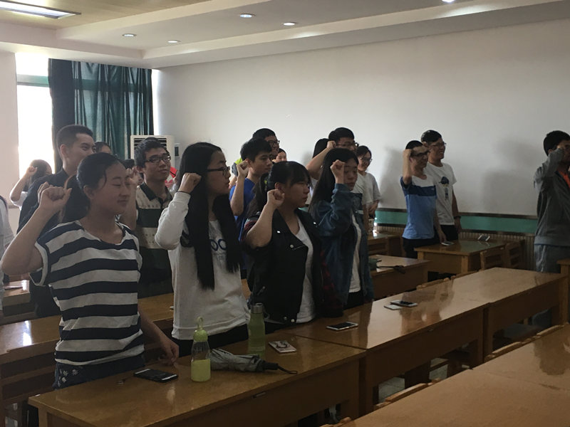 首先,全体成员共唱团歌——《光荣啊,中国共青团》,在团歌激昂的旋律中,同学们备感振奋;接着,团支书对中国共产主义青年团的历史发展、组织原则进行了简单介绍,指出它中国共产主义青年团原名中国社会主义青年团,是中国共产党领导的先进青年的群众组织,是广大青年在实践中学习中国特色社会主义和共产主义的学校,是中国共产党的助手和后备军。同时,并点明共青团对积极推动社会主义物质文明、快推进社会主义现代化贡献的智慧和力量。 学习之后,大家畅谈了自己的感受并明确了今后将要努力的方向;最后,班长提出了对大家的希望,并由团支书组织大家进行宣誓。