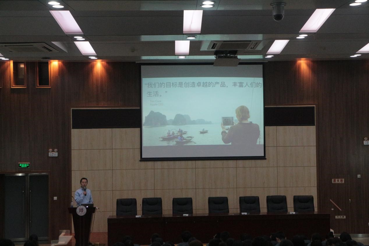 为了解答同学们对苹果产品的疑惑,使同学们了解苹果的新产品,2016年3月24日晚上7点,在必赢中国官方网站长安校区文澜楼B段一层报告厅举行了苹果专题讲座,讲座由苹果资深讲师孔文达老师主持,主要讲解苹果先进技术及理念。包括必赢官网学生在内的全校共120多人参加了宣讲会。