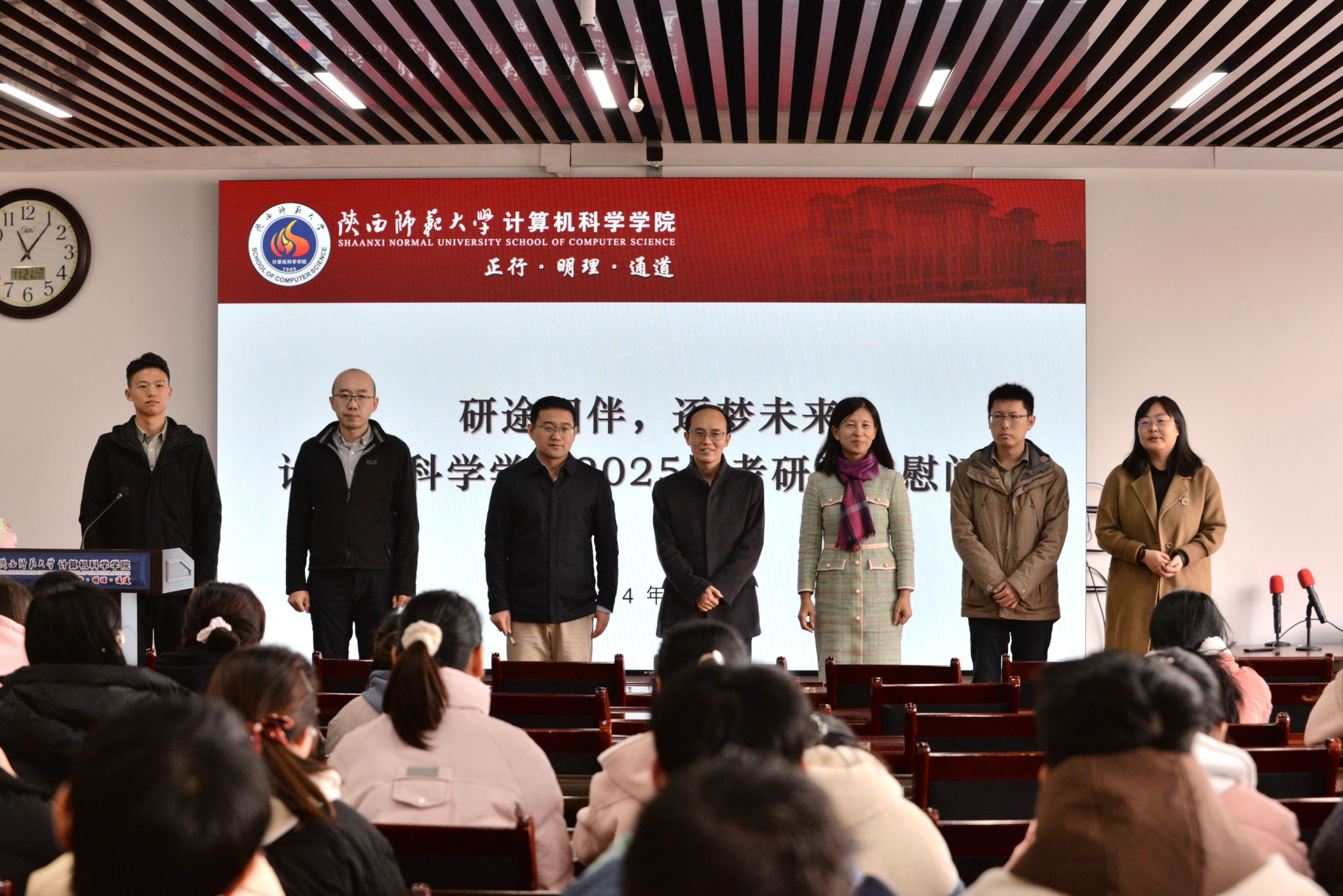 慰问会上,刘中央向2025届考研学子分享考研报名情况,全体参会老师一一送上对同学们的鼓励和祝愿,往届优秀学长代表分享了考研经验与备考技巧。随后学院老师将充满寓意与寄托美好期许的物资发放给必赢官网考研学子。