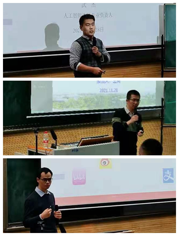 之后,田丰老师向同学们做了介绍软件工程专业的讲座。田丰老师运用类比的方法,并将十几年前人们的沟通交流方式与现今的微信软件作为对比,通过以微信作为引例,生动具体的介绍了软件的前端开发、后端开发和软件测试等部门工作内容,对未来科技软件的形式进行了展望。