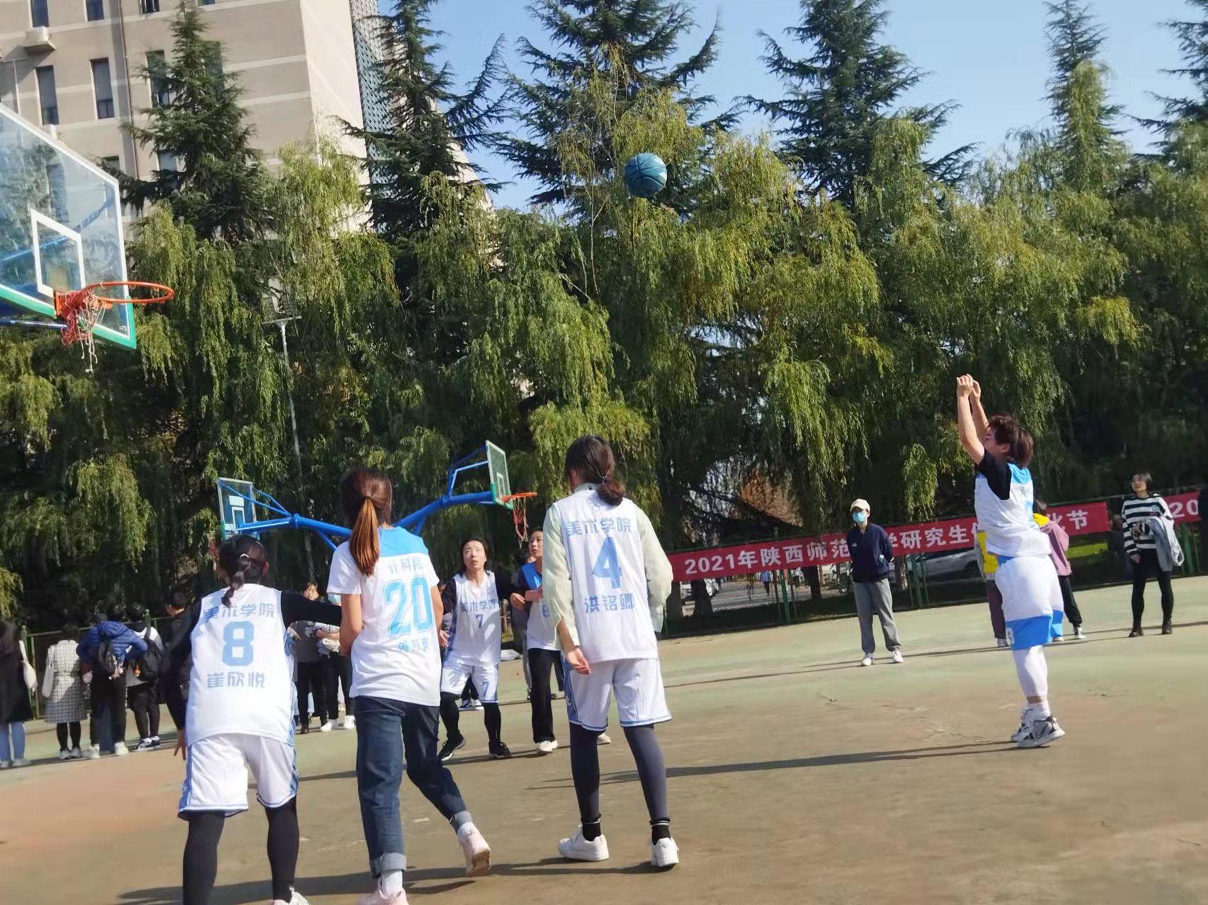 2021年12月7日,由我校研究生院和体育学院共同举办的研究生“迎新杯”篮球赛圆满结束,必赢官网研究生代表队取得了优异的成绩。其中,男子组在5V5全场比赛中挺进八强,女子组在3V3半场比赛中荣获季军,必赢官网研究生康晨迪在女子组1V1比赛和技巧赛斩获双冠。
