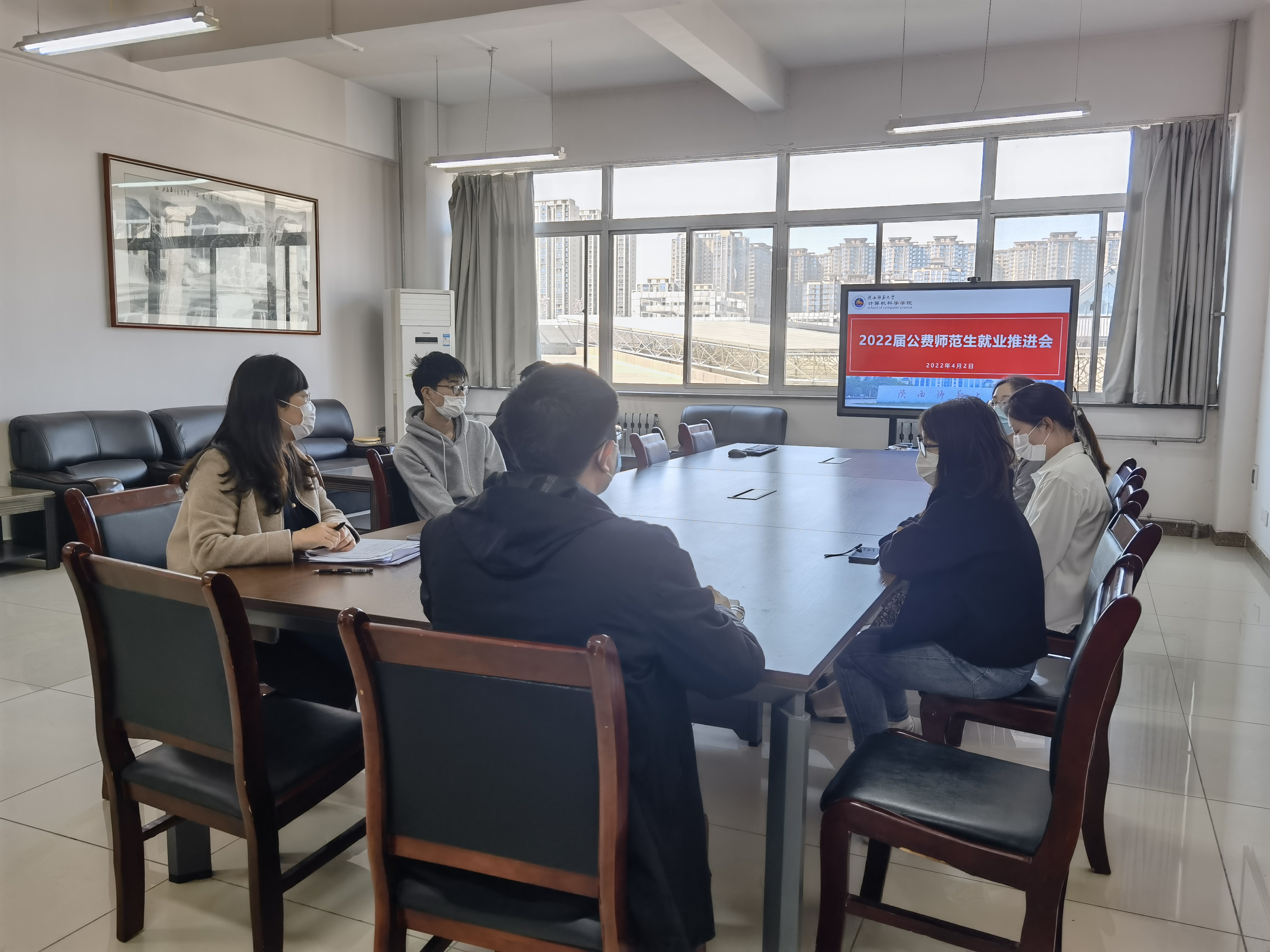 42下午,我院在文津楼3427会议室召开2022届公费师范生就业推进会。学院副院长李鹏,毕业班辅导员田海东,6名河南、四川、贵州三个省份暂未就业公费师范生参加会议会议党委副书记郭康凌主持。