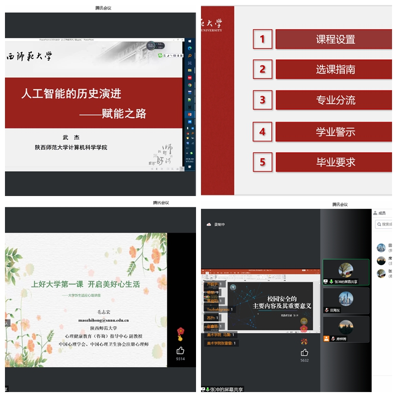 9月8日心理健康教育指导中心毛志宏老师以《上好大学第一课 开启美好新生活》为题,结合具体事例向新生介绍了大学新生面临的转变、常见的适应问题等,且指出了具体可行的切实解决方法,并指引学生学会心理转型和重塑等方面,帮助新生提前适应大学新生活,引导学生适应角色和环境的转变,尽快融入大学生活;学院教学秘书朱炜老师围绕“课程设置、选课指南、专业分流、学业警示、毕业要求”等方面进行了讲解;辅导员田海东就防诈防骗、纪律规定、疫情防控等方面进行了的详细介绍。