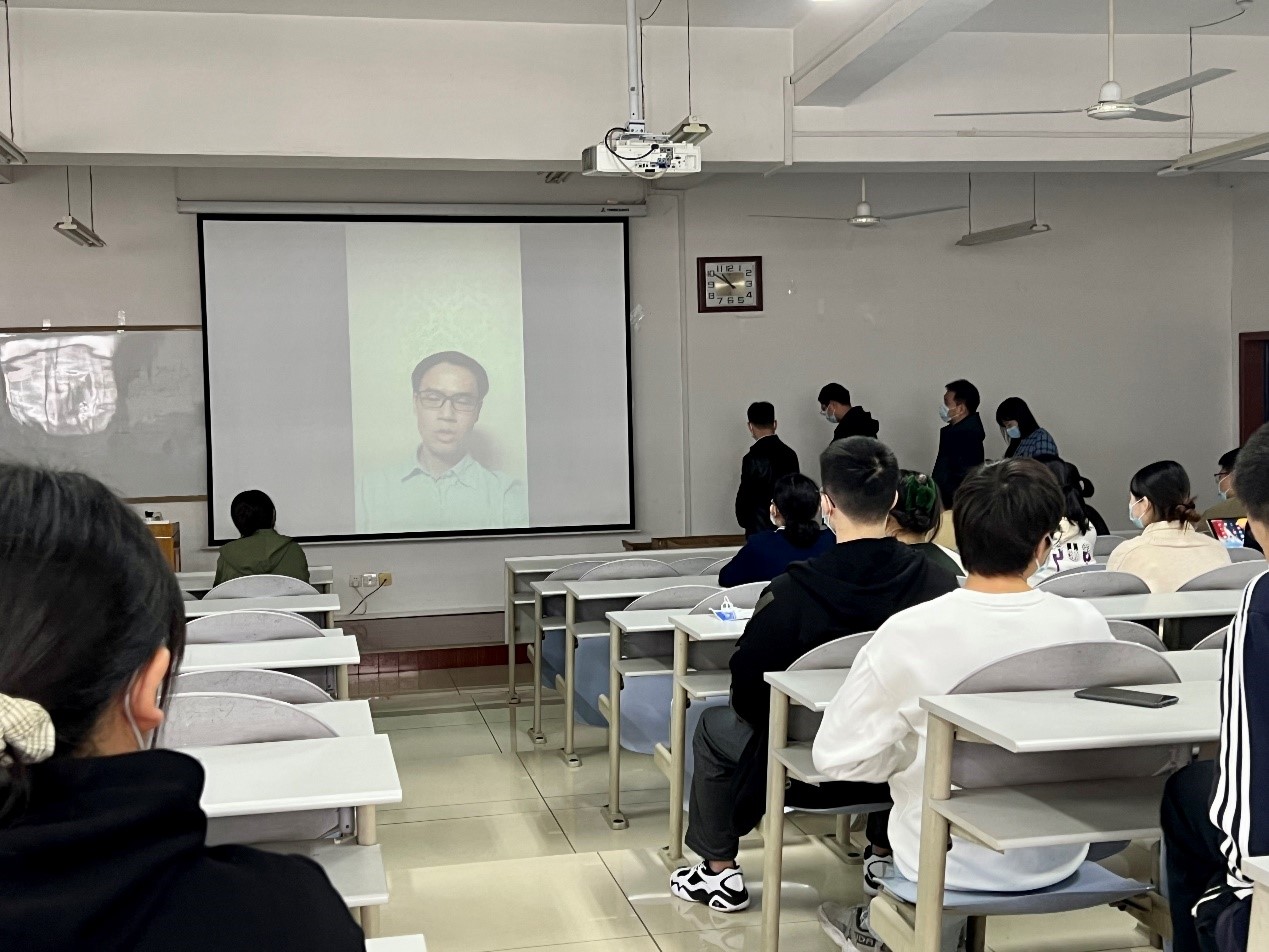 此外,郭康凌转达了马苗副院长、任杰副院长以及计算机科学与技术(创新实验班)专业负责人王亮对同学们的鼓励。马苗介绍了学院研究生科研条件,鼓励同学们努力考取研究生。任杰表示考研是磨练人意志和耐心的过程,要有规划、会选择。王亮希望同学们在这最后冲刺的时光里,相信自己,按部就班地投入到紧张的复习备考中。2019级班主任陈昱莅和软件工程专业负责人田丰通过视频的方式激励大家要认真对待,积极备考,争取深造机会。