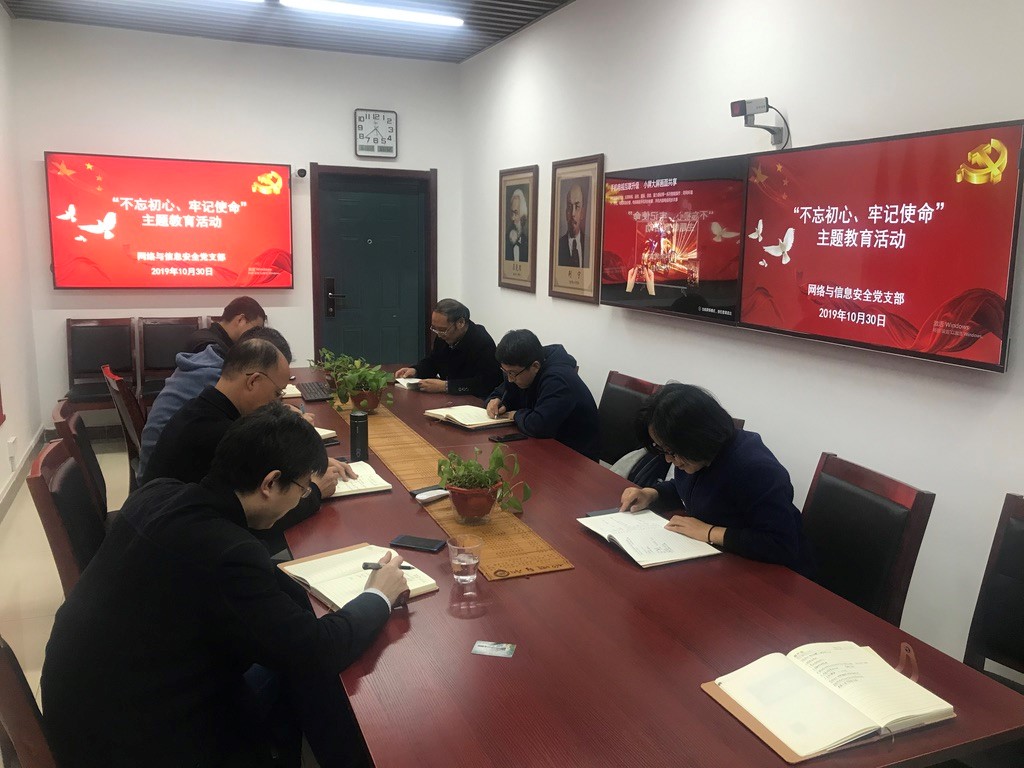 2019年11月6日下午,必赢官网网络与信息安全党支部在文津楼3531党员活动室开展了“不忘初心、牢记使命”主题教育学习会议。在校党员参加了本次活动,支部书记禹勇安排了本次学习会议的主要内容。